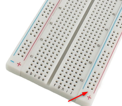 Iremos conectar o pino de 5V do arduino no barramento azul da protoboard e o GND1 no barramento vermelho. O 5V representará o nosso positivo e o GND o nosso negativo.